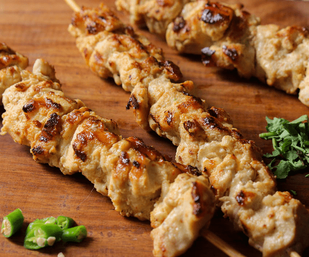 Brochette de poulet mariné, grillé et préparé avec une sauce douce parfumée à la cannelle